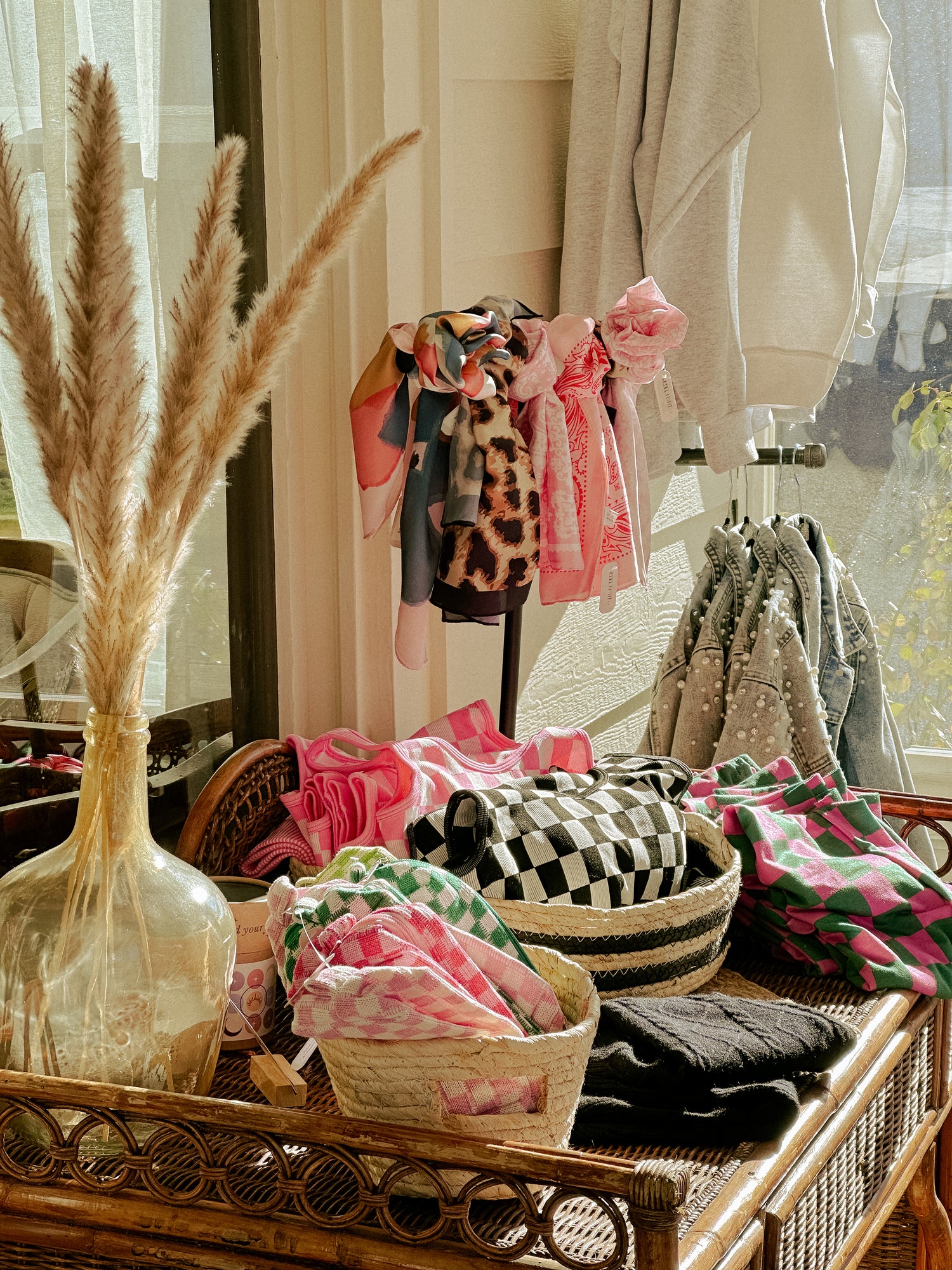 Our shop has a thoughtfully curated collection of trendy accessories. These include Canvas Tote bags, Purses, Hair claws, and scrunchies.