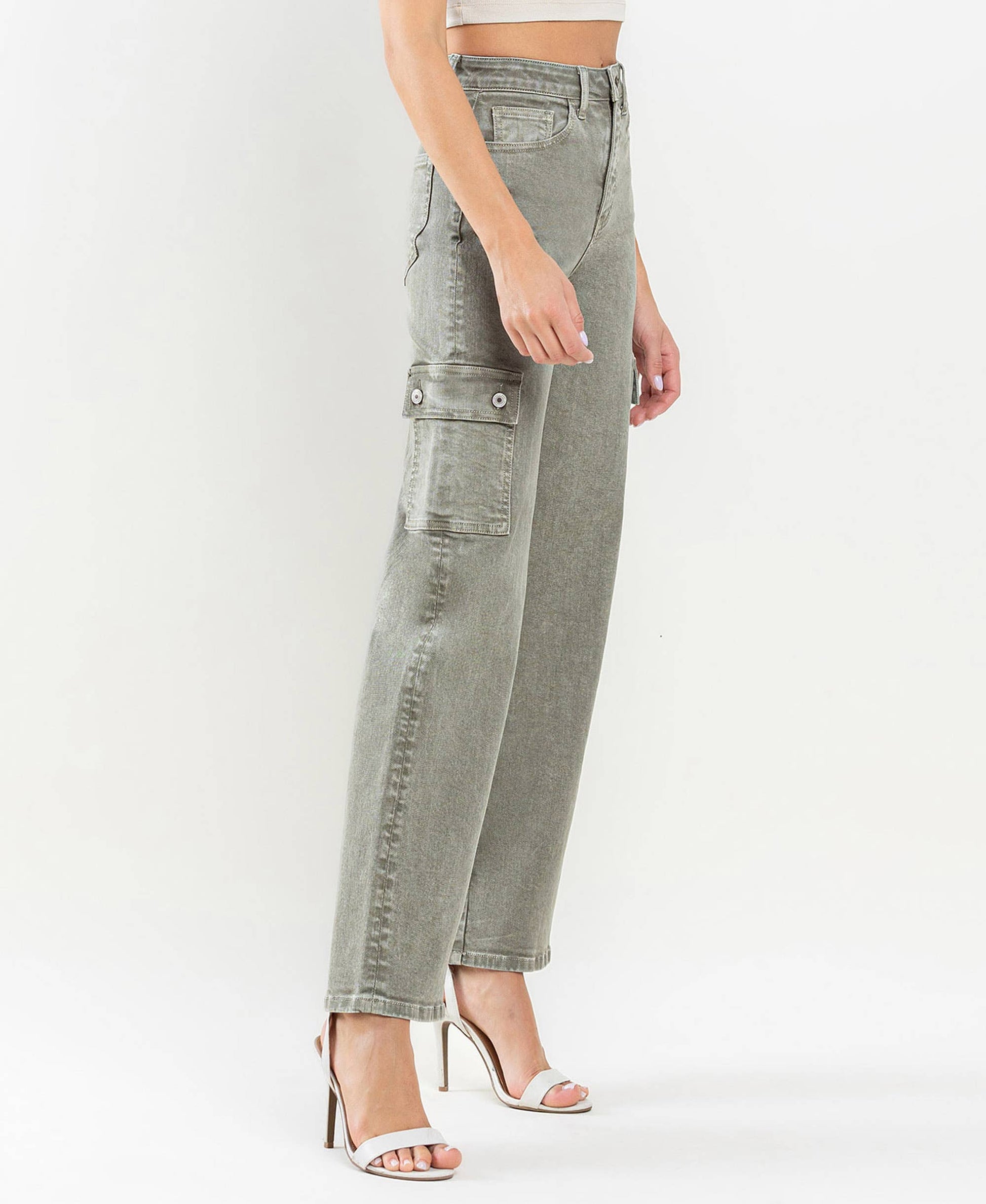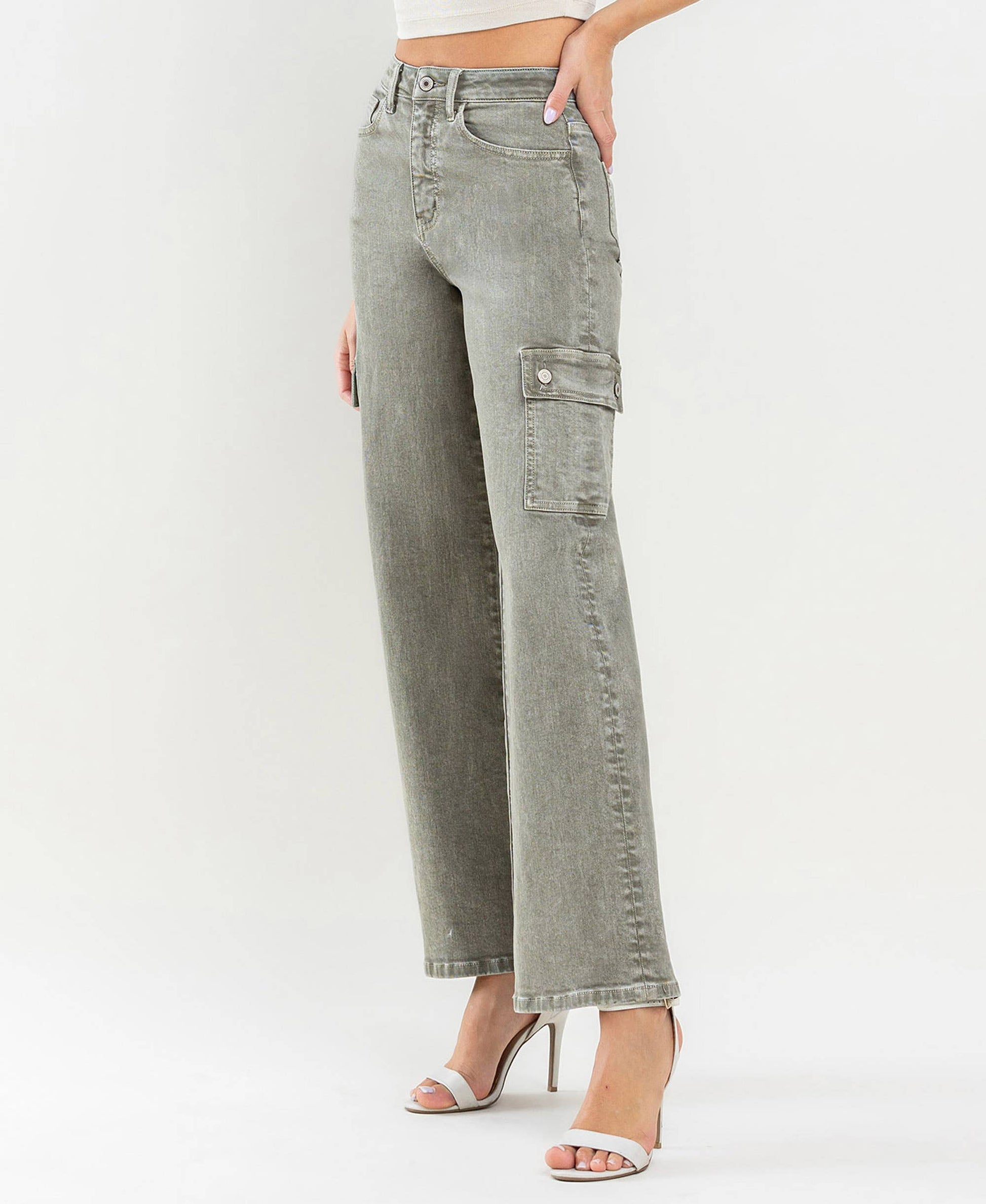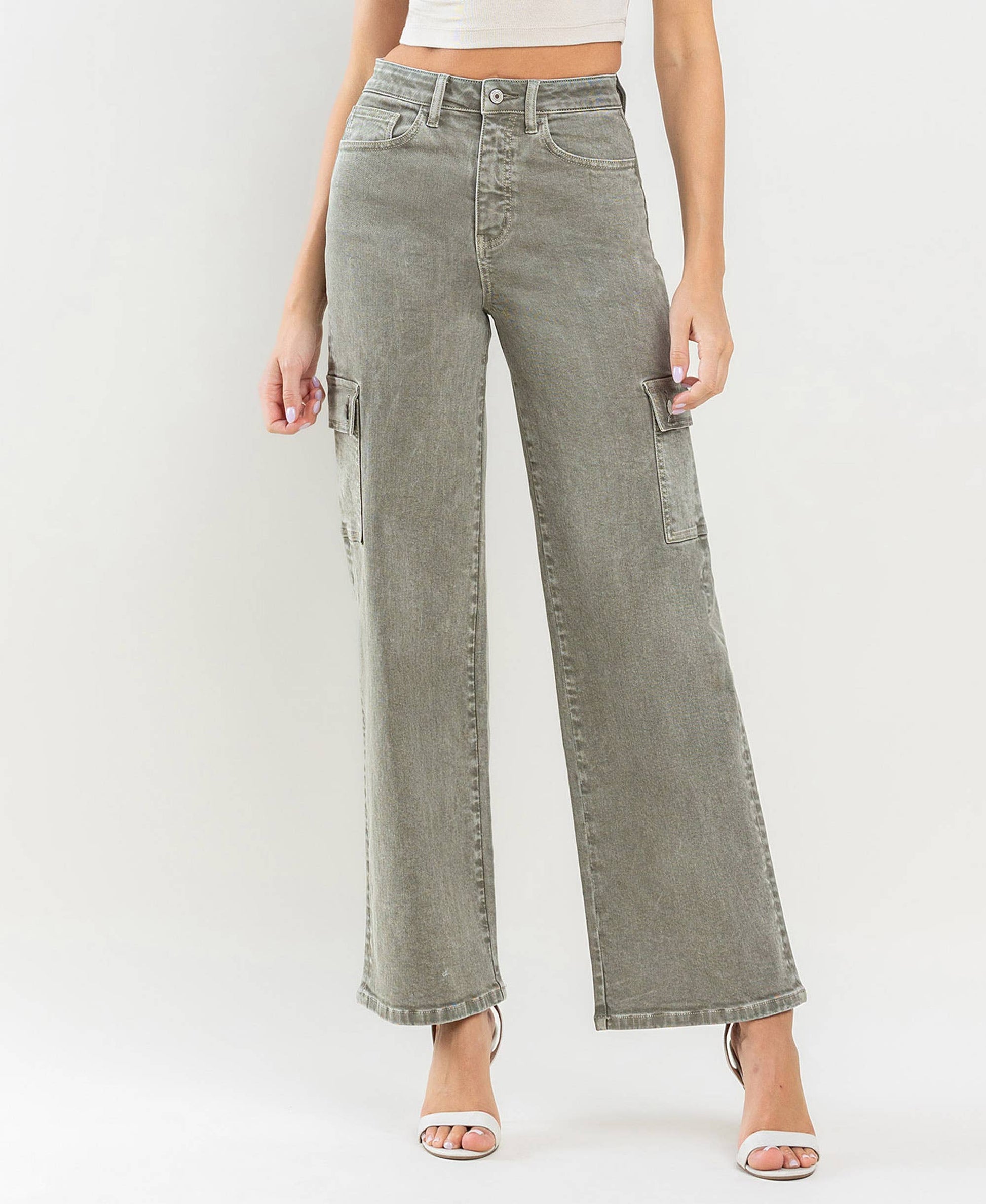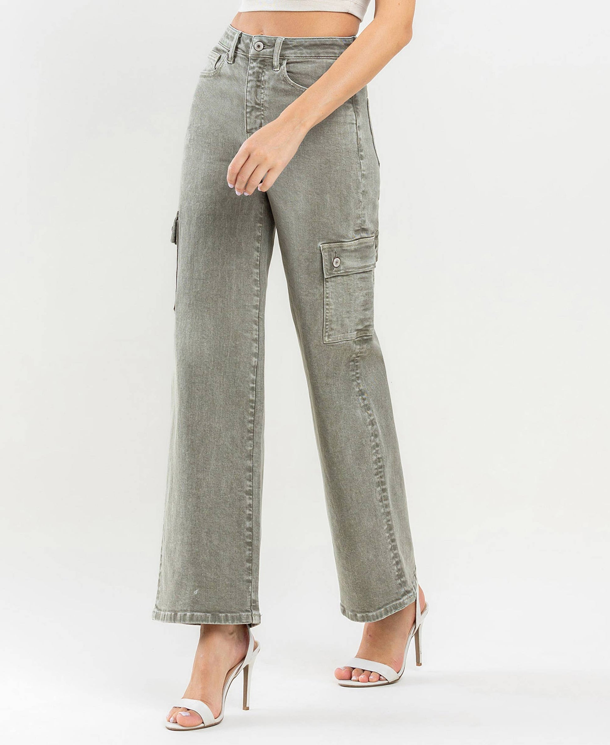 These 90's cargo jeans feature a super high rise waist and comfortable stretch denim, perfect for a loose and relaxed fit. With a full length design, these jeans are a nod to 90's fashion and can be worn for added comfort and style.