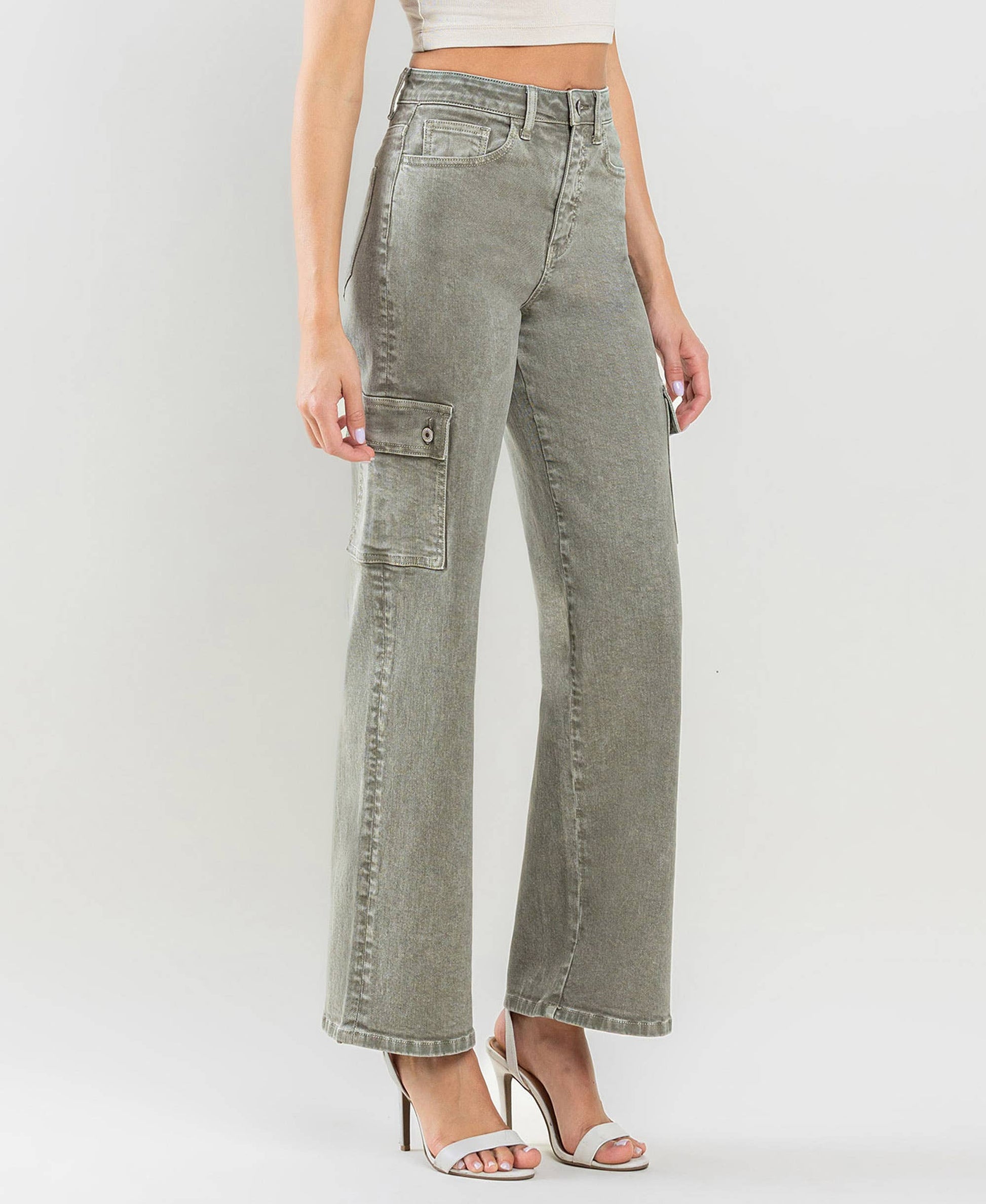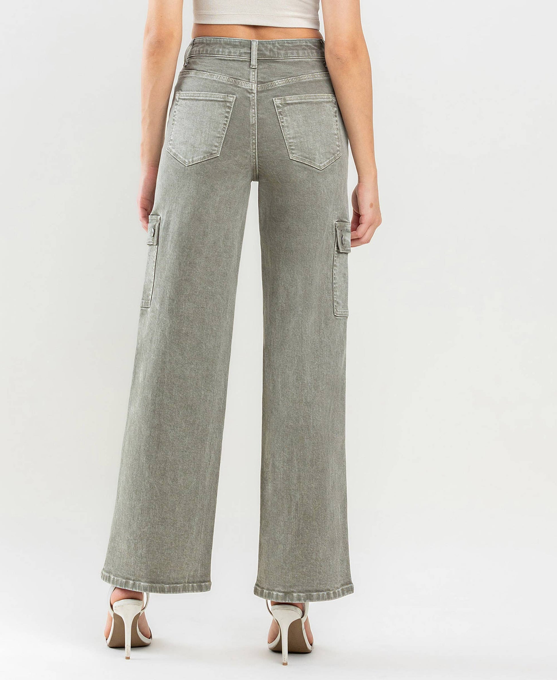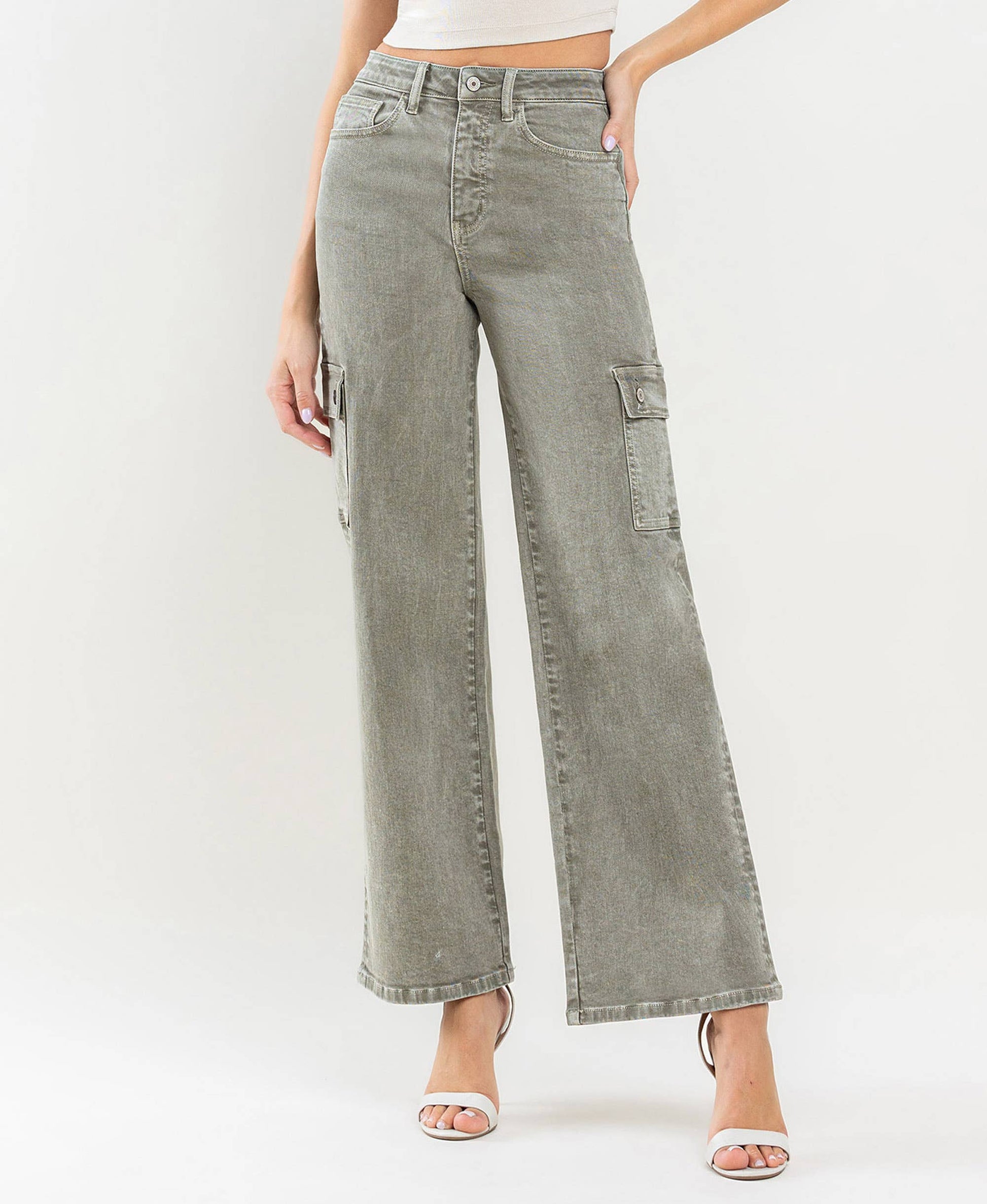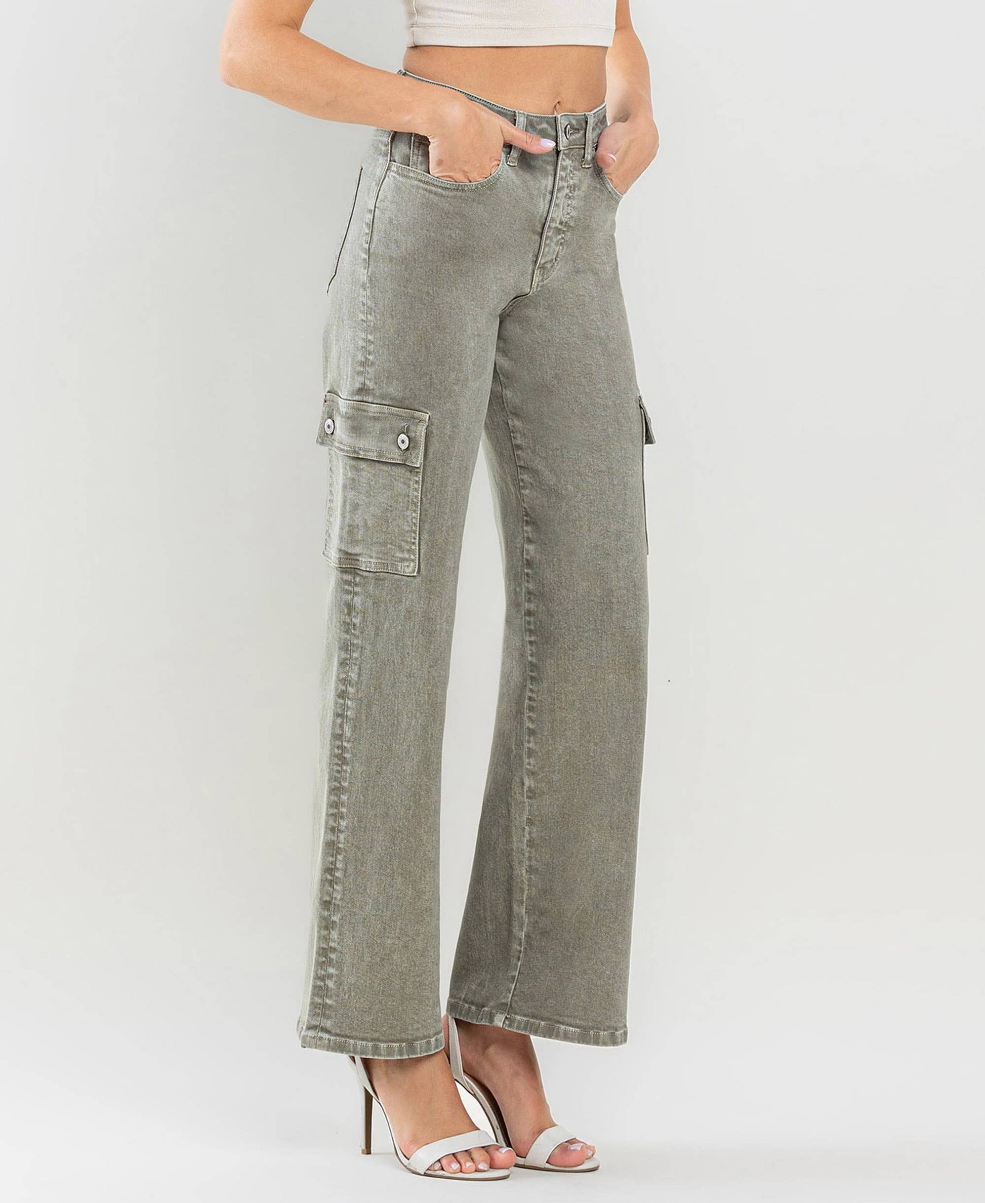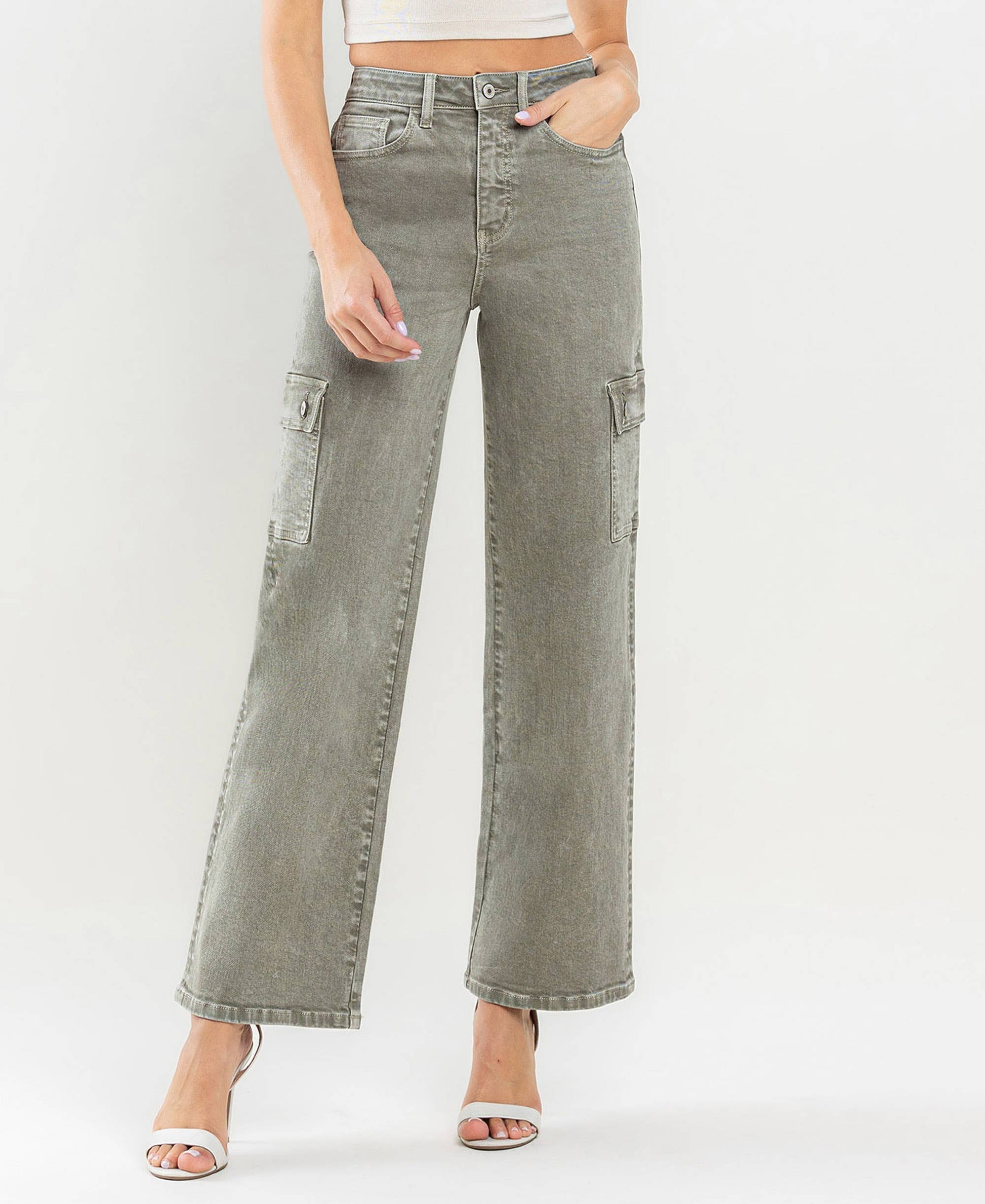 These 90's cargo jeans feature a super high rise waist and comfortable stretch denim, perfect for a loose and relaxed fit. With a full length design, these jeans are a nod to 90's fashion and can be worn for added comfort and style.