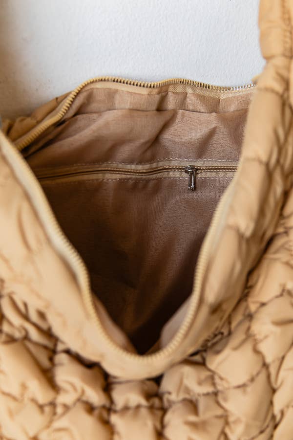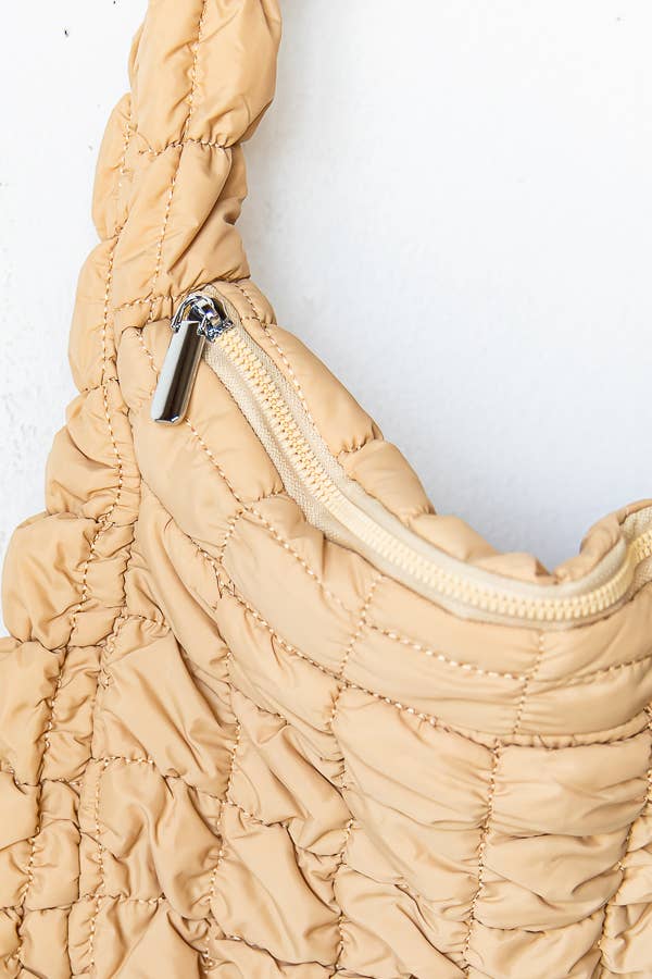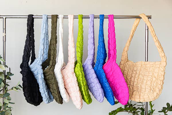Experience the latest puffer tote bag trend with its unique dumpling shape. Choose from a variety of colors to suit your personal style. Its plush and cozy design adds a must-have statement to any wardrobe.