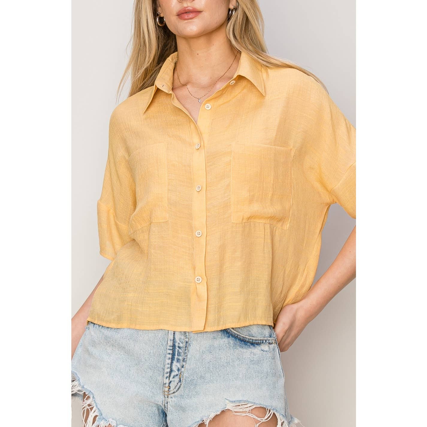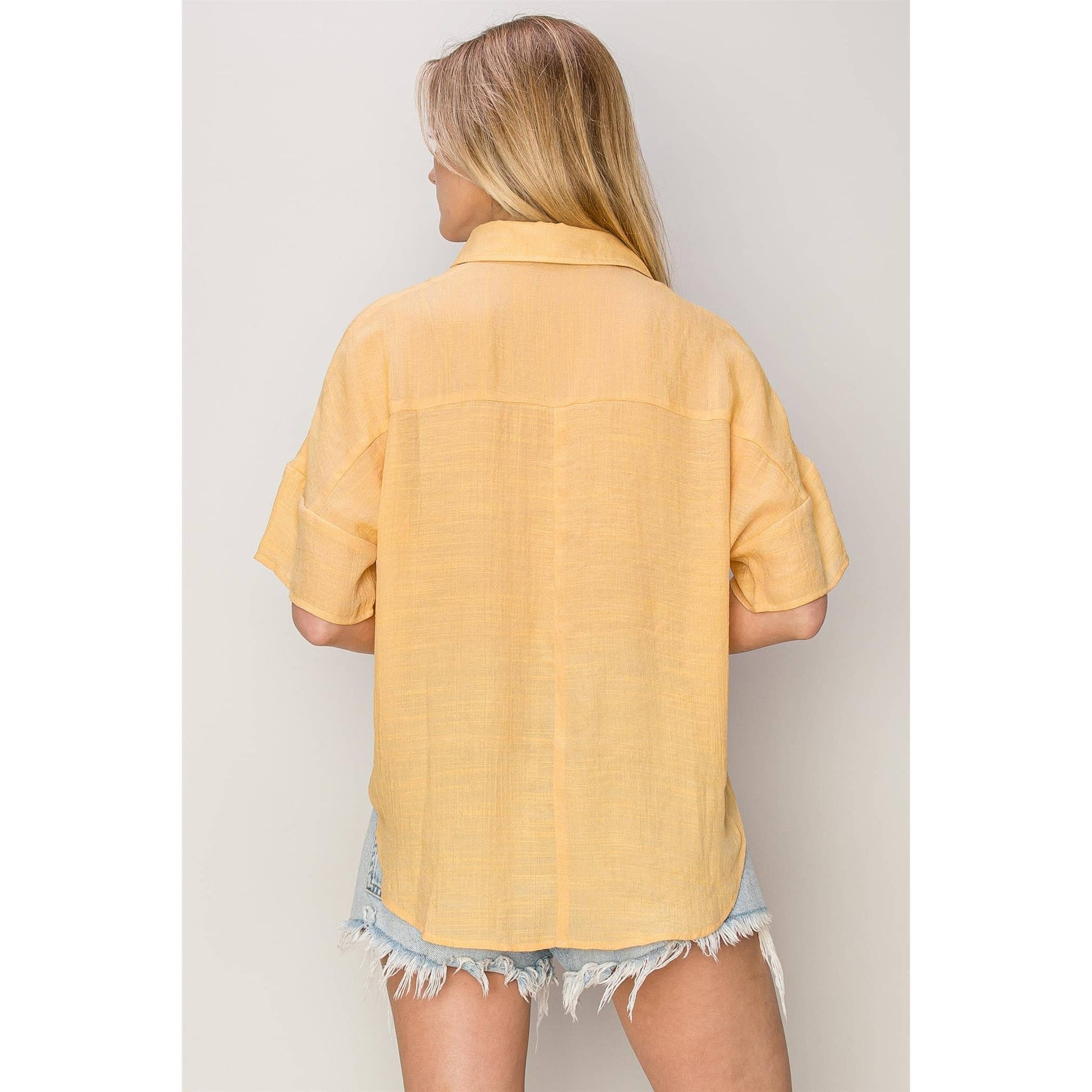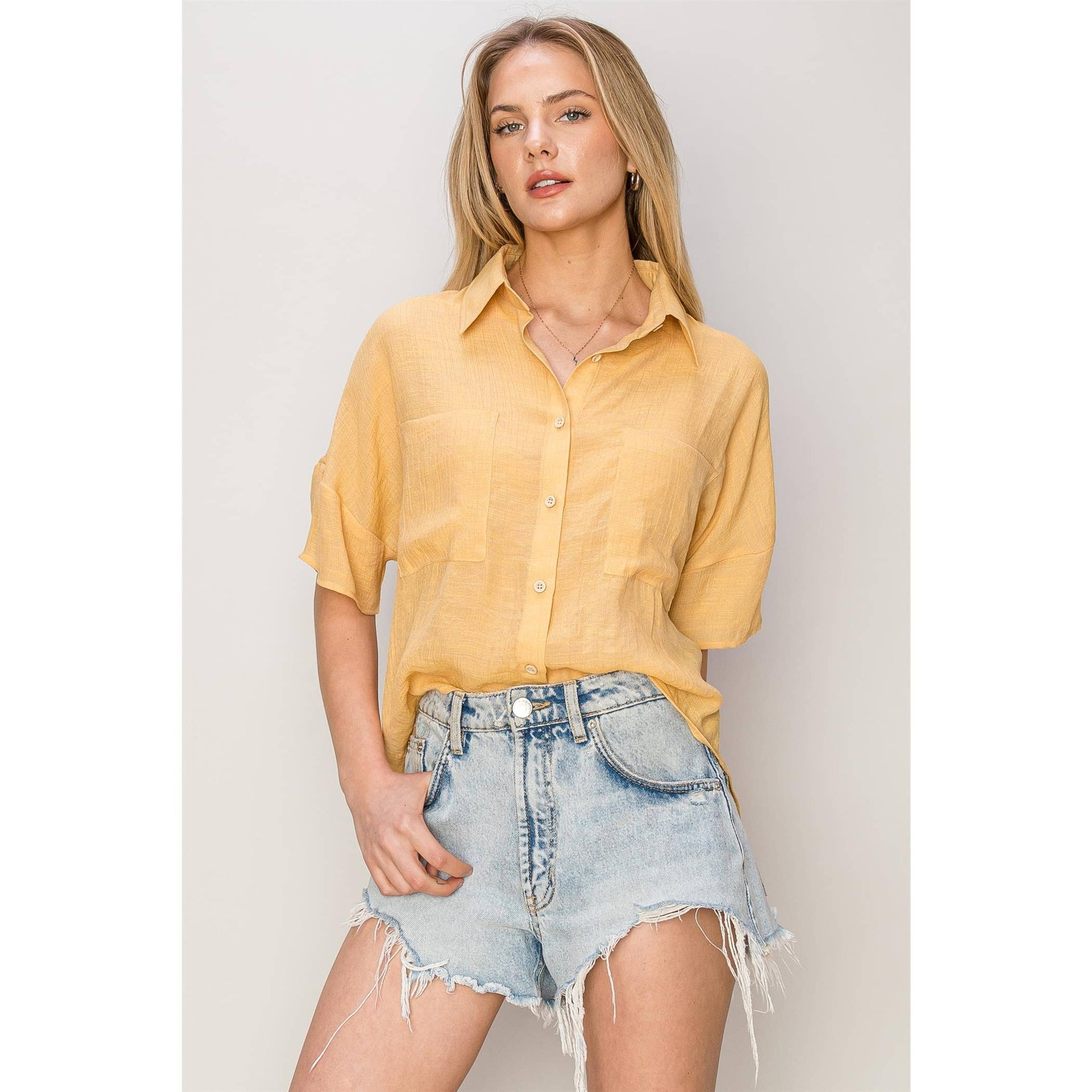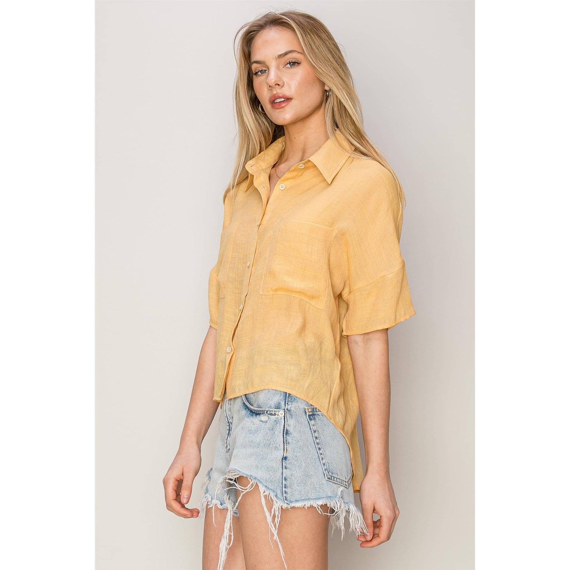 Crafted with front patch pockets, this Pineapple Top modernizes the timeless shirt design. The relaxed fit ensures comfort while the point collar and short sleeves embody sophistication. Complete with a versatile hi-lo hem, it effortlessly pairs with both shorts and slacks for a polished look. Imported.