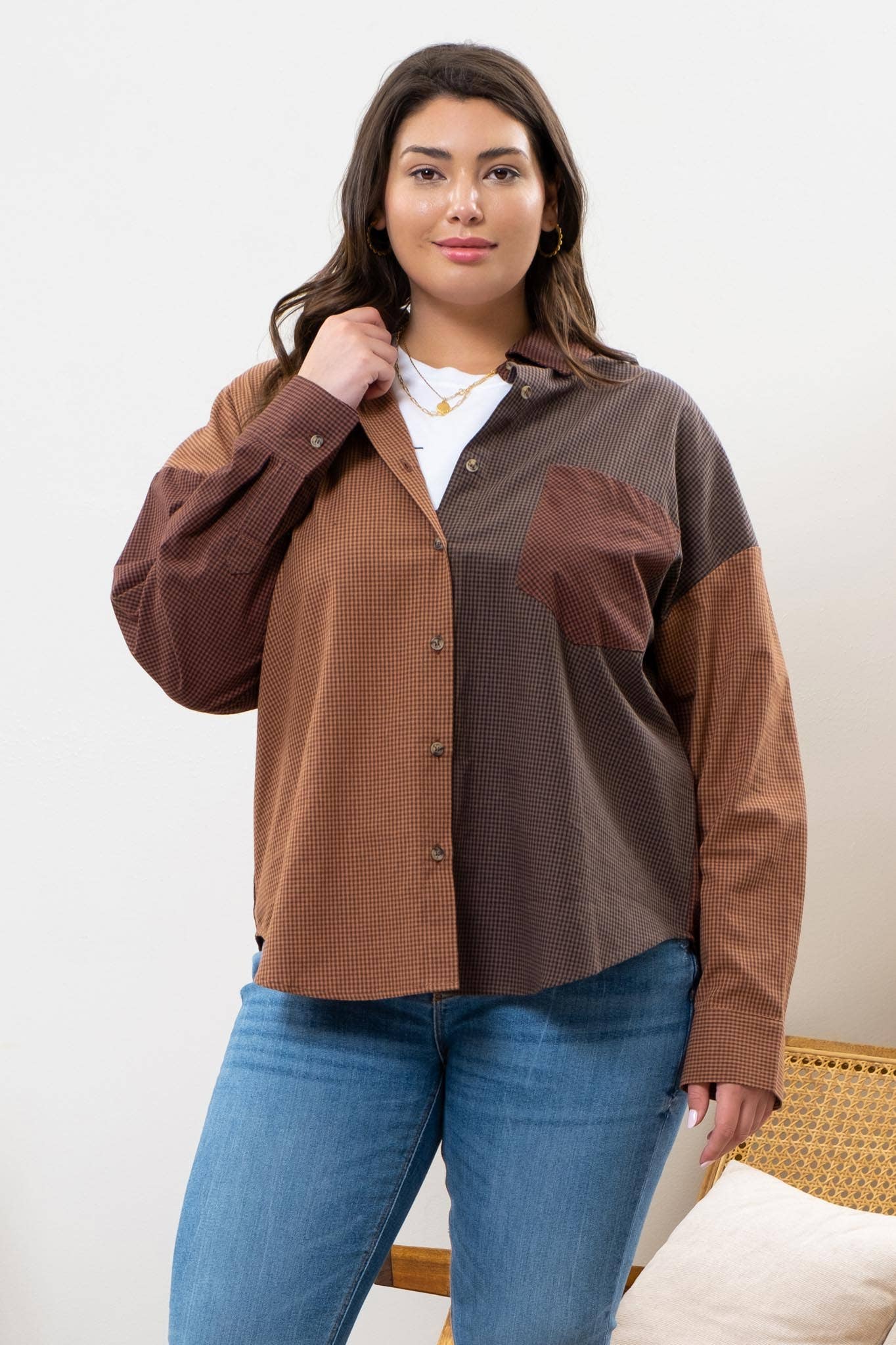 Constructed with a classic collared neckline and long sleeves, the Lakelyn's Button Down features a stylish check print and colorblock design. Made of 100% cotton, this shirt is durable and comfortable for everyday wear.